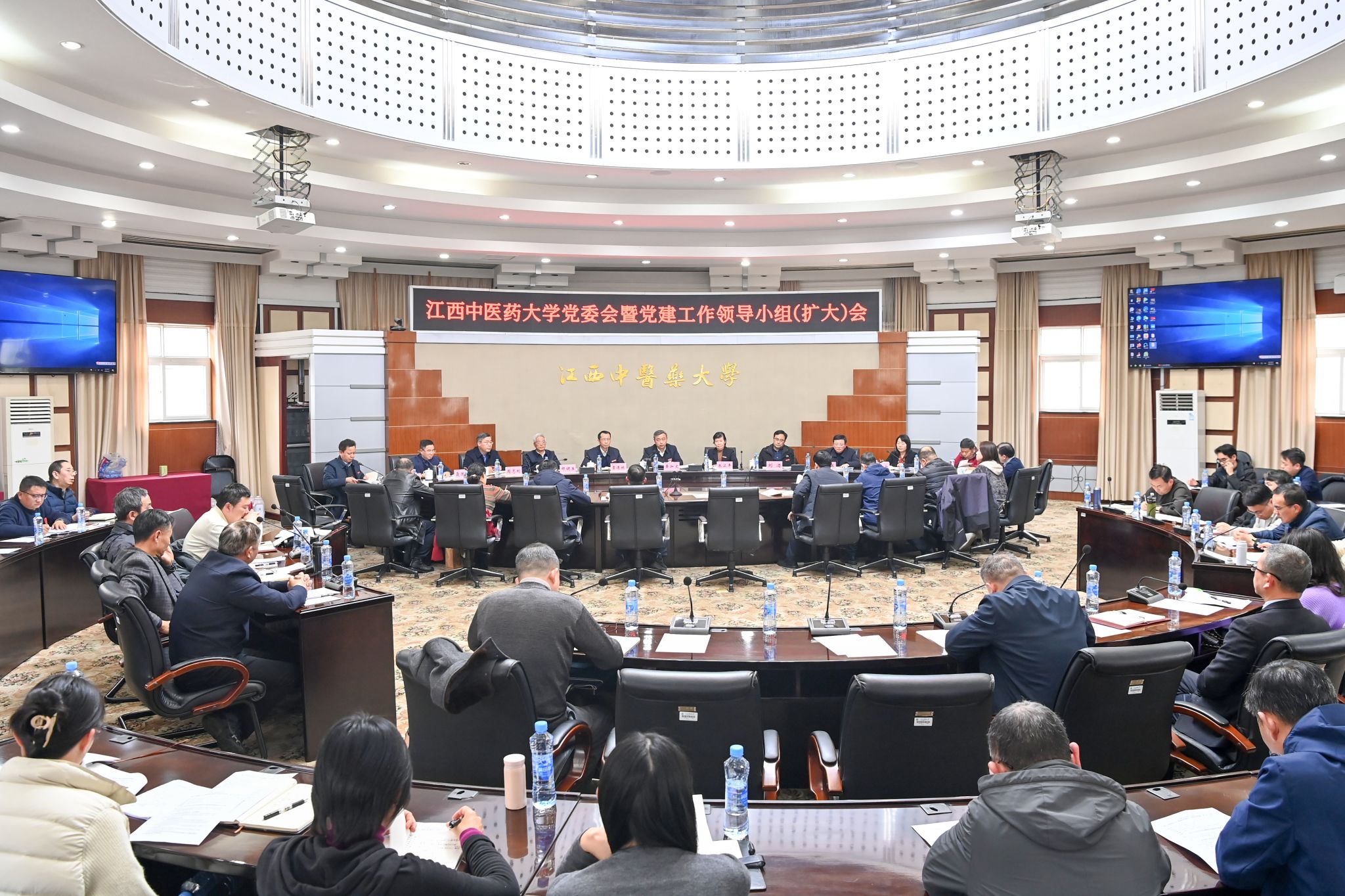校领导朱卫丰、章德林、刘潜、邹健生、严小军、周志刚、钟凌云,党委委员聂国林、薛铁瑛、徐道富、周小青,党建工作领导小组成员、各二级单位党组织书记参加会议。